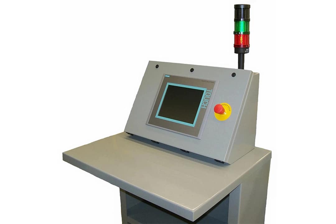 Rando Machine has over 70 years of manufacturing experience, and this is exemplified by our PLC based control systems with touch screen operator interfaces. Our high quality control systems are designed to be used in conjunction with machining, control console assembly, and panel assembly. Our equipment provides for a range of individual roll speeds, fan speeds, and overall production speeds, while employing high quality components from Siemens, Rockwell, and enclosures that meet NEMA 12 ratings. Our easy to operate controls systems offer a host of benefits, including enhanced productivity, alarm-based trouble-shooting, and safety features that meet OSHA, NEC, CE, IEC, and UL standards. Motion control is maintained by VFD and servo motors. We also offer many quality services for our machine controls like design, engineering, programming, debugging, and commissioning.