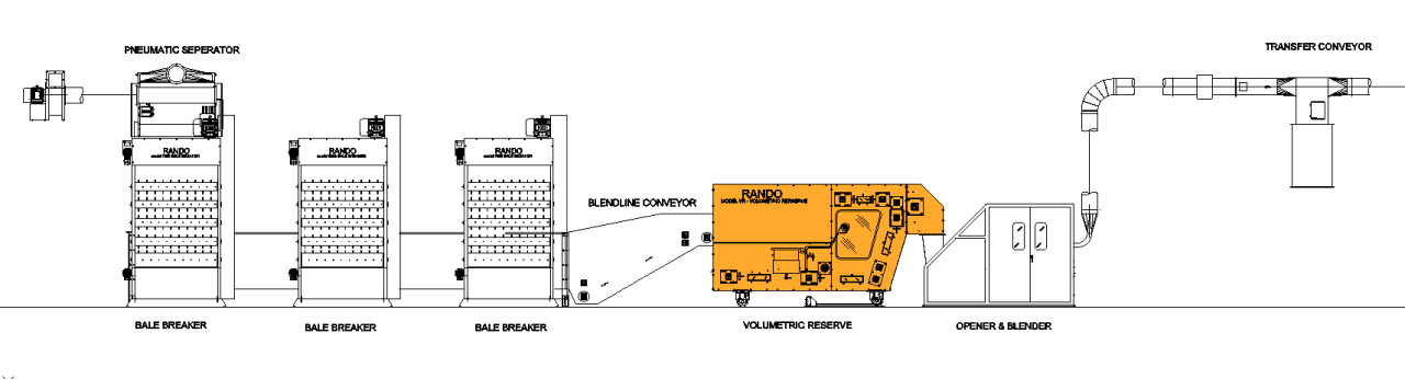 The Rando Prefeeder and the related Rando Volumetric Reserve are both designed with a large hopper capacity that provides a consistent rate of blended fibers that are then fed to the Rando Opener/Blender.