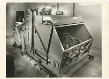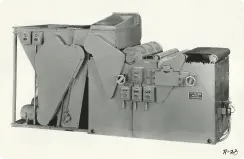 Company’s second prototype (today’s air laid machine) built to use as a picker lap of shoddy or reclaimed tire cord to produce a random fiber web. *The world’s first machine designed specifically for the infant formed fabrics industry—now on display at the Smithsonian Institute.