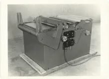 Company’s second prototype (today’s air laid machine) built to use as a picker lap of shoddy or reclaimed tire cord to produce a random fiber web. *The world’s first machine designed specifically for the infant formed fabrics industry—now on display at the Smithsonian Institute.