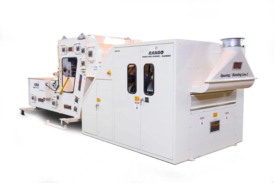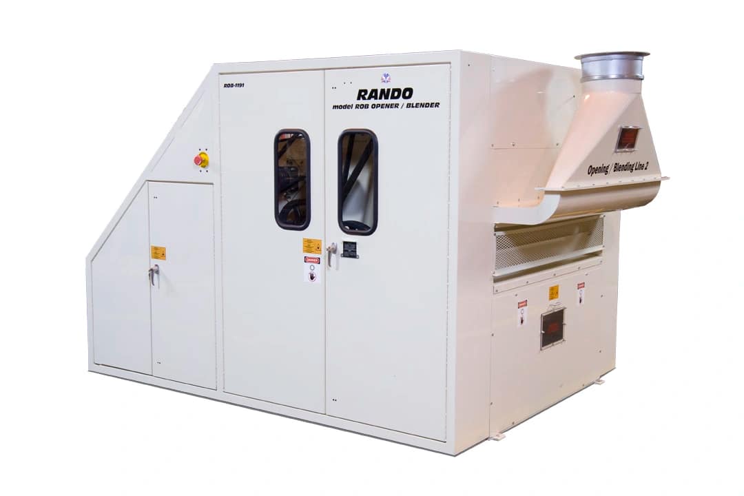 Rando opener/blenders provide a host of benefits and features for opening and blending fibers of various deniers, filaments and microns. Equipped with wired rolls, the ROB receives blended fibers from a Prefeeder, which are then opened, resulting in equally individualized fiber. Usage of our ROB is wide ranging and includes the automotive, military, filtration, aerospace, agricultural, and medical industries. The specific types of practical applications under these headings include those that focus on absorbency, clean air, soundproofing, residential and industrial abrasives, cosmetic/hygiene products, and more.